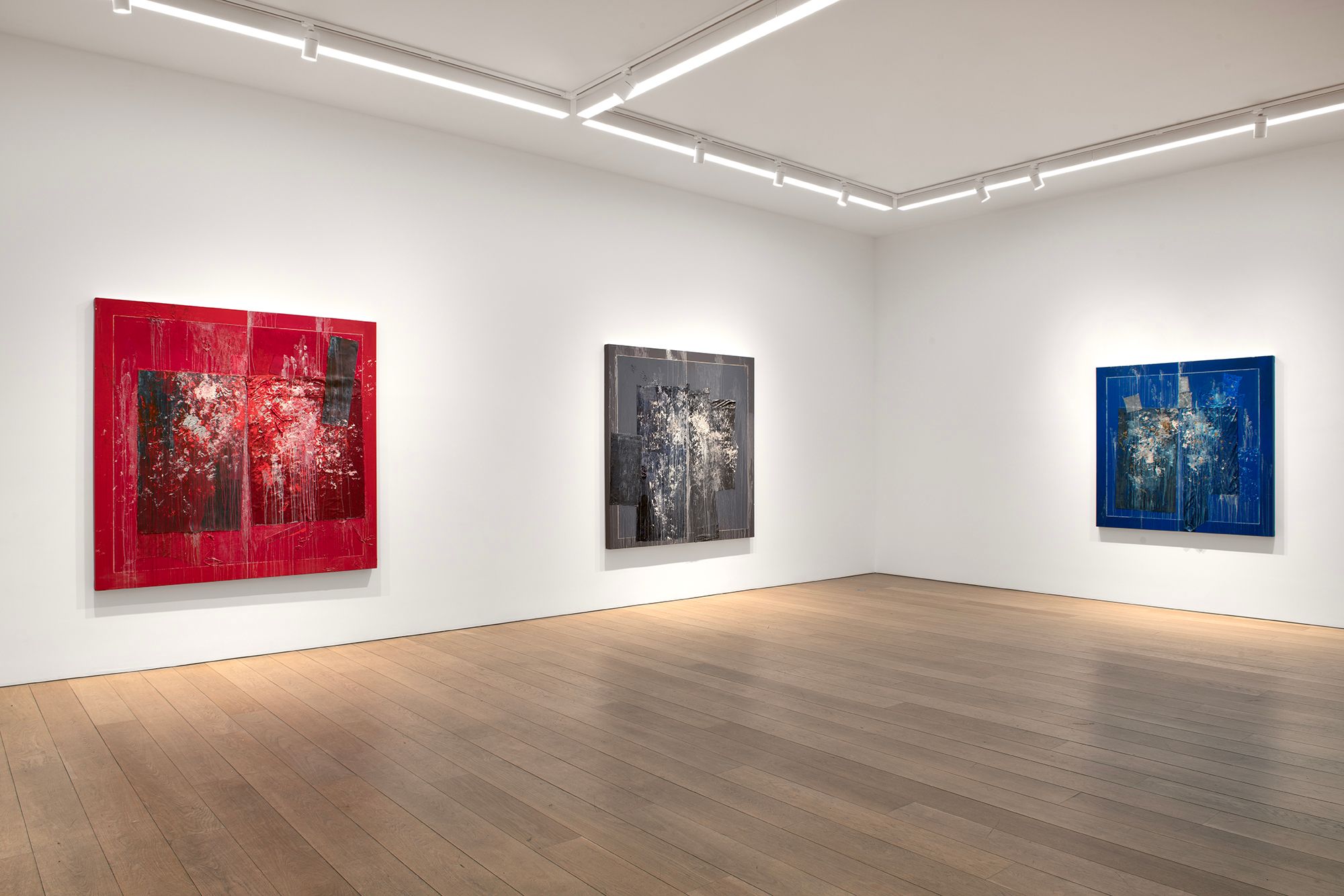Hurley and Sylvester share an investigative approach to painting, pushing the boundaries of material, structure, and spatial perception while crafting layered reflections on presence, identity, and memory. Despite their generational differences, Hurley and Sylvester both approach abstraction as a dynamic and evolving language—a framework for exploring materiality and meaning. For Hurley, abstraction is treated as a form of meditative rigor, where the act of painting is inseparable from fundamental physical choices and the histories they evoke. His inclusion of wooden sticks in his multi-panel constructions draws attention to the intersections of painting, architecture, and the provisional forms of everyday life. These elements imbue his works with a sense of rootedness, linking the modernist ethos of reduction with the tactile, lived experience of space and place.