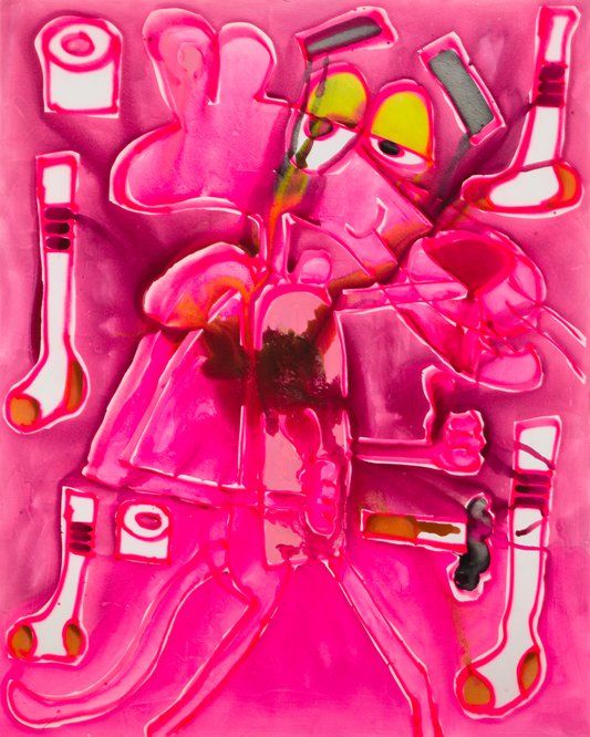 Katherine Bernhardt (b. 1975, Clayton, MO) is a Brooklyn-based painter. She holds a BFA from The School of the Art Institute of Chicago and an MFA from the School of Visual Arts in New York. Bernhardt has exhibited extensively in New York and abroad at venues and institutions such as: the Modern Art Museum, Fort Worth, TX; Contemporary Art Museum, St. Louis; Xavier Hufkens, Brussels; Carl Freedman Gallery, London; and Venus over Manhattan, NY. In 2016, Bernhardt was included in Manifesta 11: The European Biennial of Contemporary Art, in Zurich Switzerland. In 2017, Bernhardt presented a commissioned project at the Lever House Art Collection in New York. Her paintings are included in the Hirshhorn Museum in Washington D.C and the Rubell Collection in Miami.