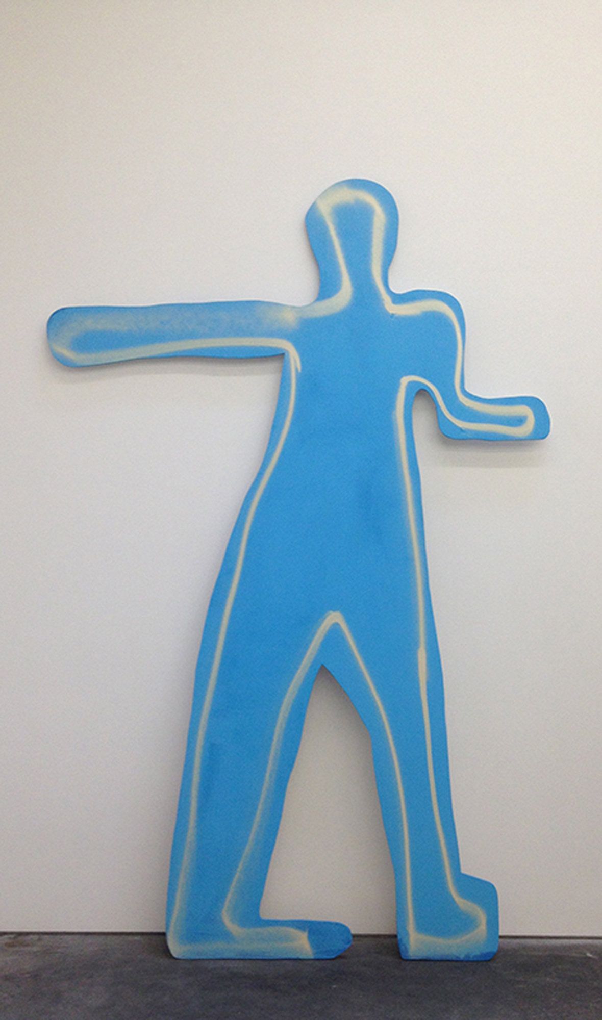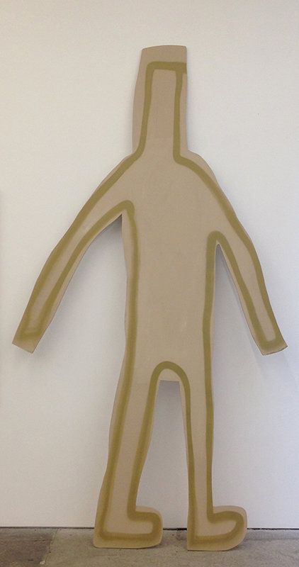 I, Clouded also features large plywood silhouettes brushed in with solid colors. They could be stand-ins for the audience, “the little guy”, other artists, or perhaps a cast of characters ready to stage an “up-with-people” type celebration of diversity. Or these are the guys sending all those damn texts. Either way, the artist, by including these figures, shows us who she had decided to cast her lot with.
