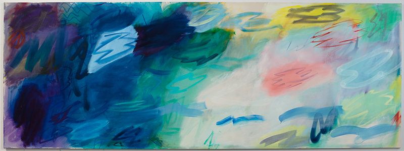 I phones, I clouded, FaceTime, in the meantime it is all happening. This show is a lament and an anthem all in one. There is a sense of movement throughout. The thought balloons, are also text balloons… that become anger clouds… that become archaic wall drawings on a prehistoric cave, that become the masterful orchestrations of Claude Monet. We see the paint, the thin paint, nearly backlit like an electronic screen on a huge scale. We can see the revisions the cancellations and we are allowed to reenter the moment we wish could have to do over and over again.